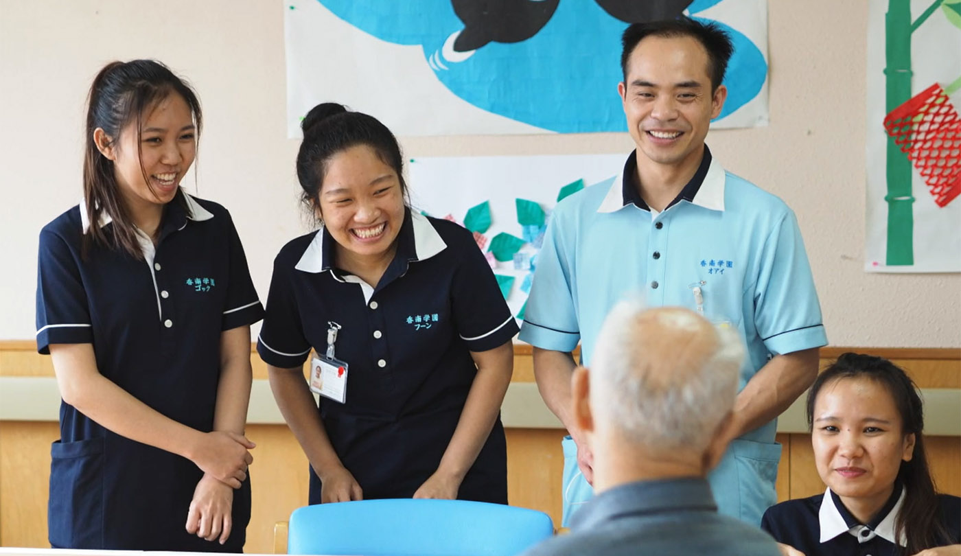 高校(中等専門學(xué)校)及び以上の學(xué)歴層の方に向け、二年間日本の介護(hù)専門學(xué)校で勉強(qiáng)しながら関連介護(hù)施設(shè)で研修します。「介護(hù)福祉士」の資格を取得したら、日本で就労が可能です。